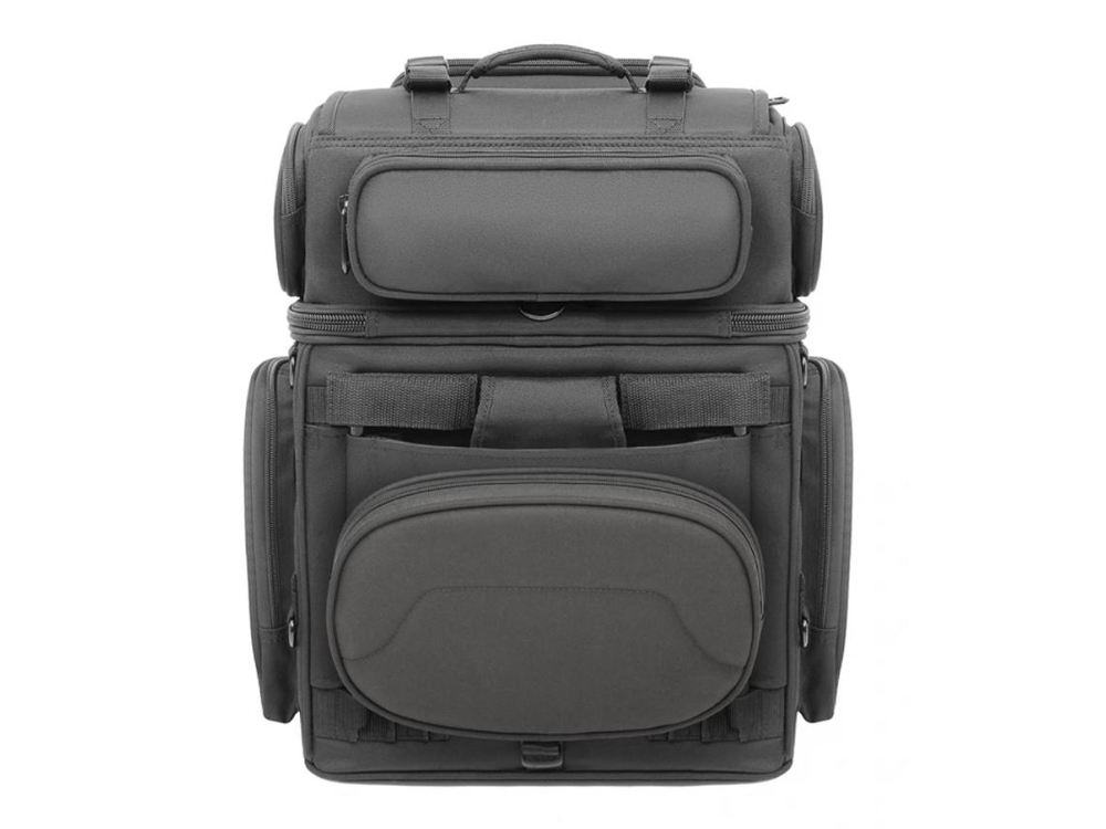 * Two mounting systems included – a seat harness or adjustable sissy bar strap system easily attaches bag to your motorcycle’s seat, luggage rack, or sissy bar